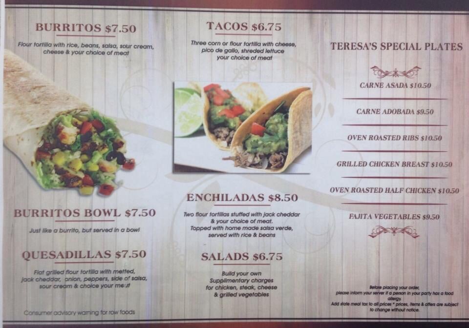 Teresa's Market Menu
